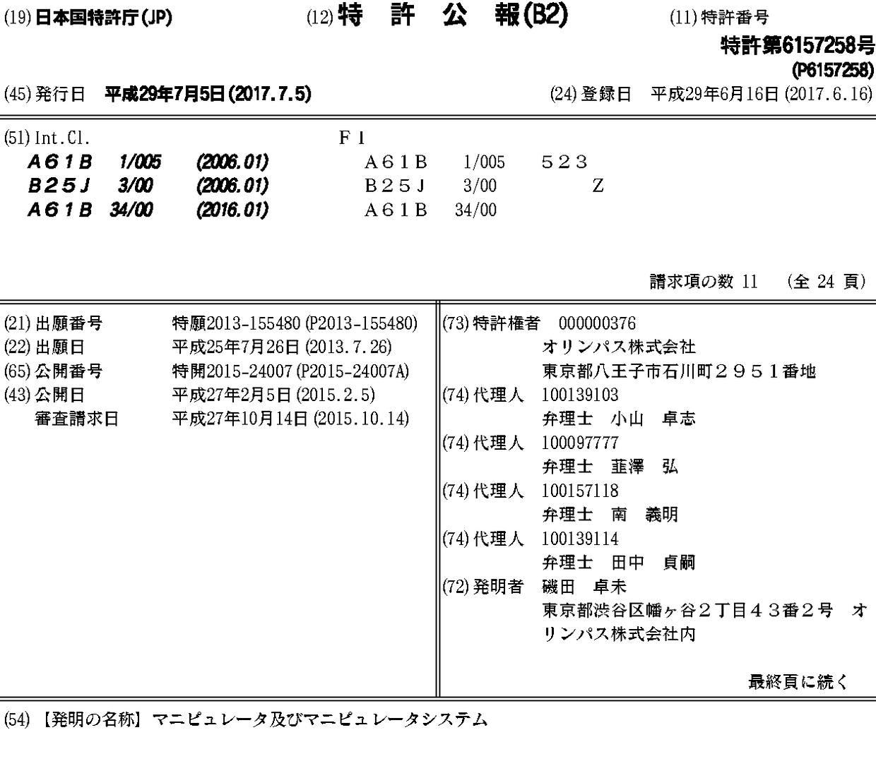 CN105407785A | CN105407785B | EP3025635A1 | EP3025635A4 | JP2015024007A | JP6157258B2 | US10085624 | US20160135663A1 | WO2015012081A1