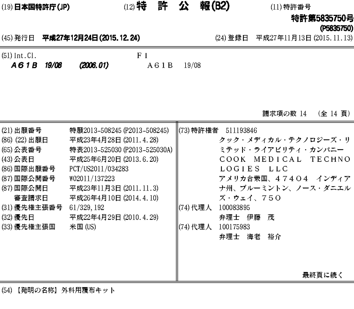クック·メディカル·テクノロジーズ·リミテッド·ライアビリティ·カンパニー