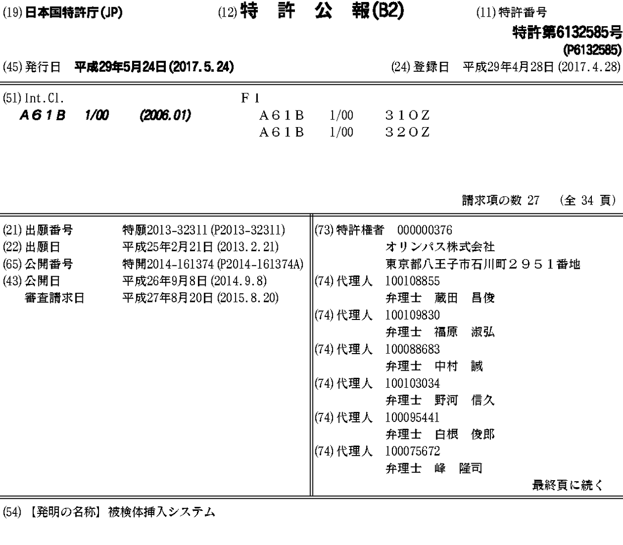 CN105025773A | CN105025773B | EP2959820A1 | EP2959820A4 | JP2014161374A | JP6132585B2 | US20150359419A1 | WO2014129436A1