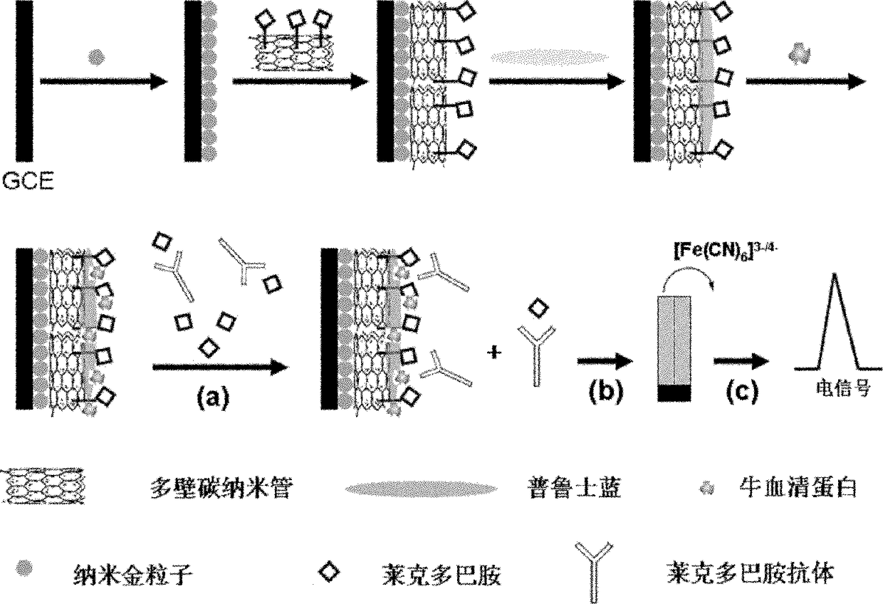 用于测定莱克多巴胺的免疫生物传感器的制备方法