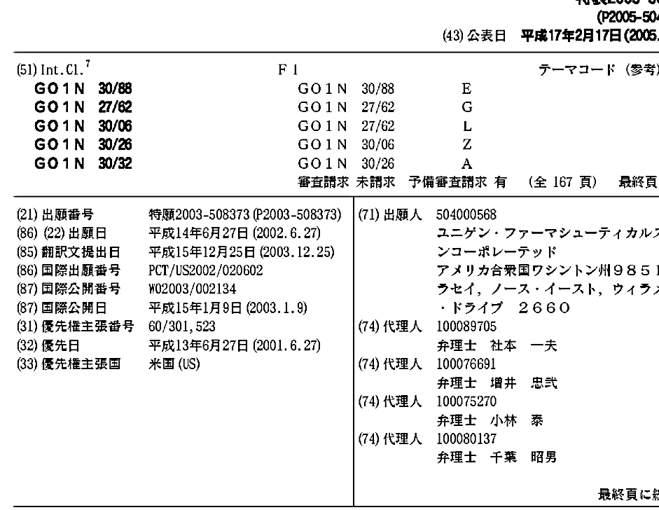 CA2451844A1 | EP1411958A1 | EP1411958A4 | JP2005504958A | KR1020040010776A | US20030113797A1 | WO2003002134A1