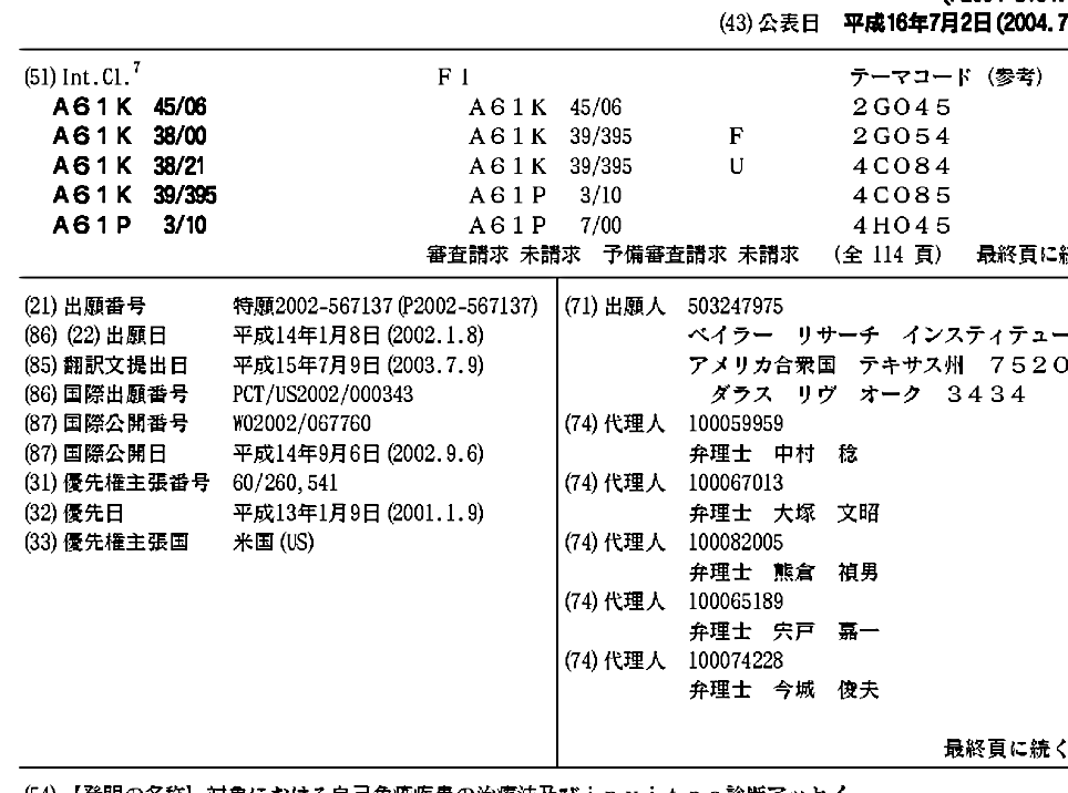 対象における自己免疫疾患の治療法及びinvitro診断アッセイ