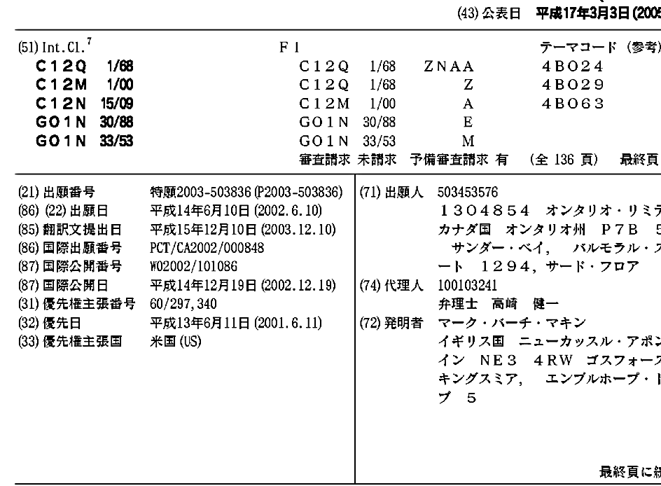 CA2450004A1 | CA2450403A1 | EP1397508A2 | JP2005506057A | WO2002101086A2 | WO2002101086A3