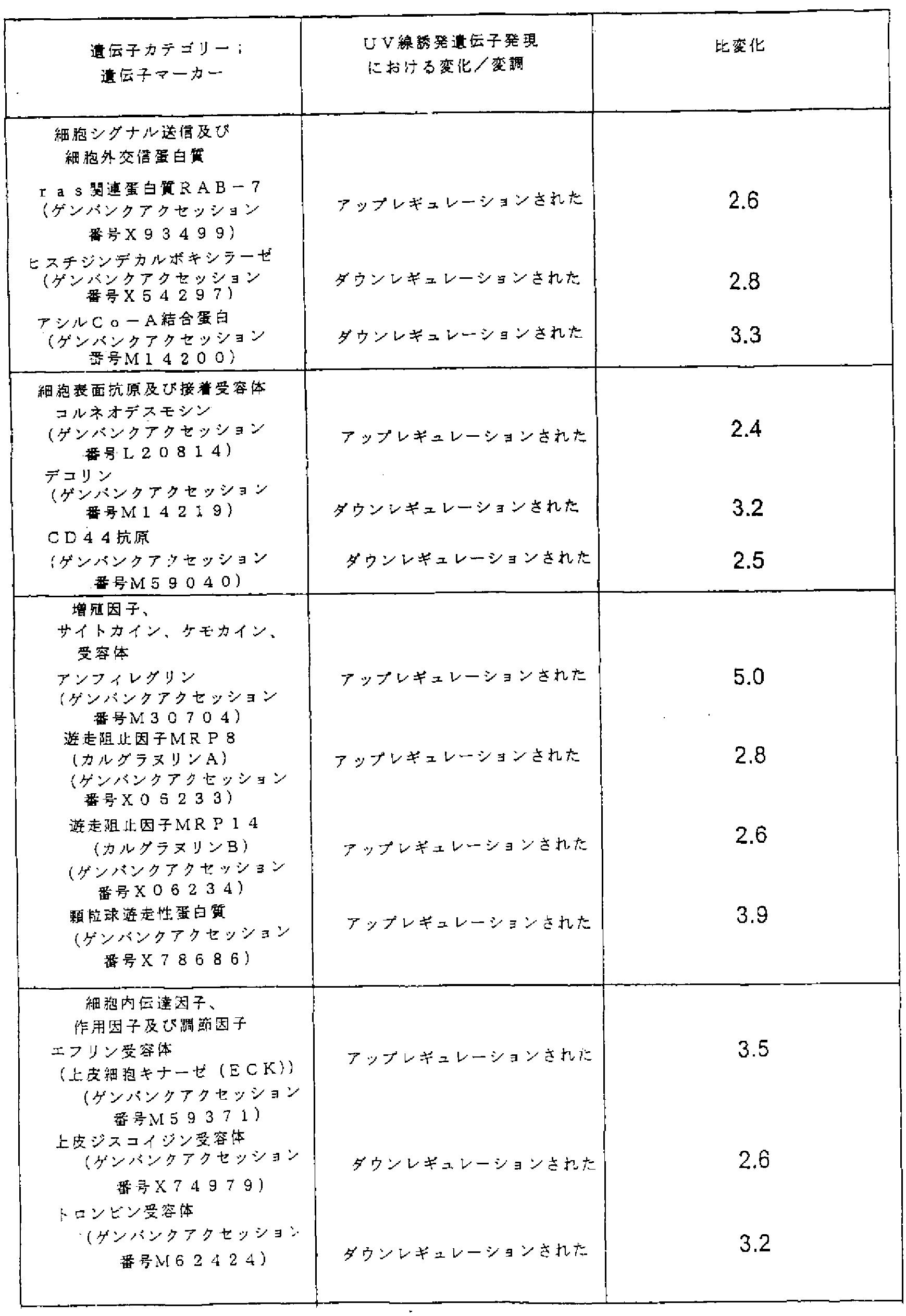 新規遺伝子マーカーを用いる皮膚に対する紫外線損傷の評価、それに関連する方法及び組成物