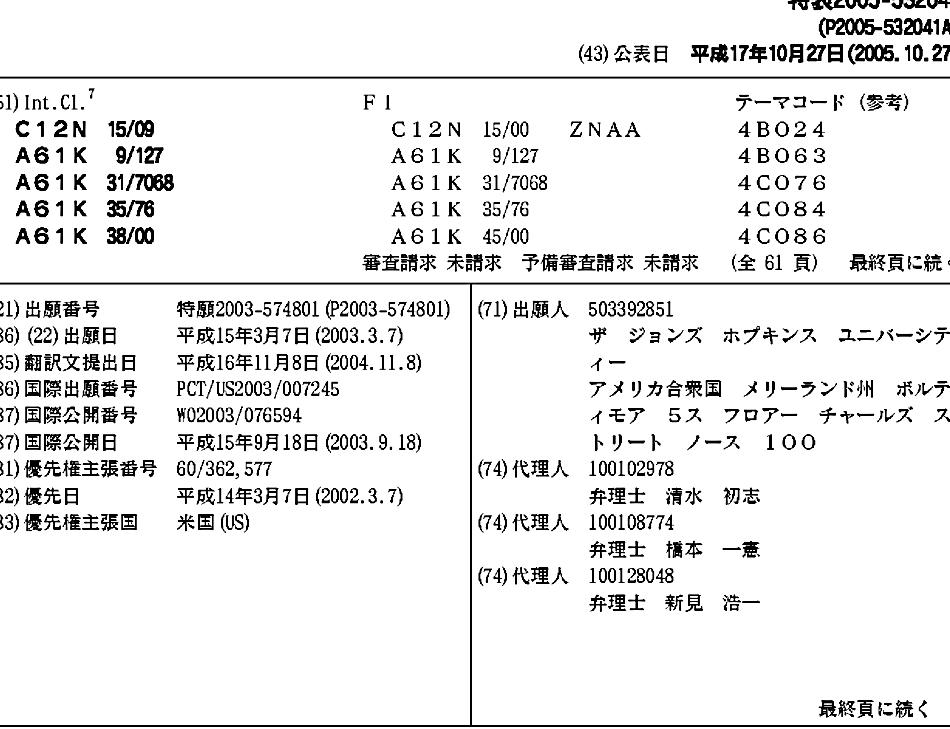 AU2003230616A1 | CA2478510A1 | CN101080499A | EP1578924A2 | EP1578924A4 | IL163732A | IL163732D0 | JP2005532041A | US20040081976A1 | US7781161 | WO2003076594A2 | WO2003076594A3