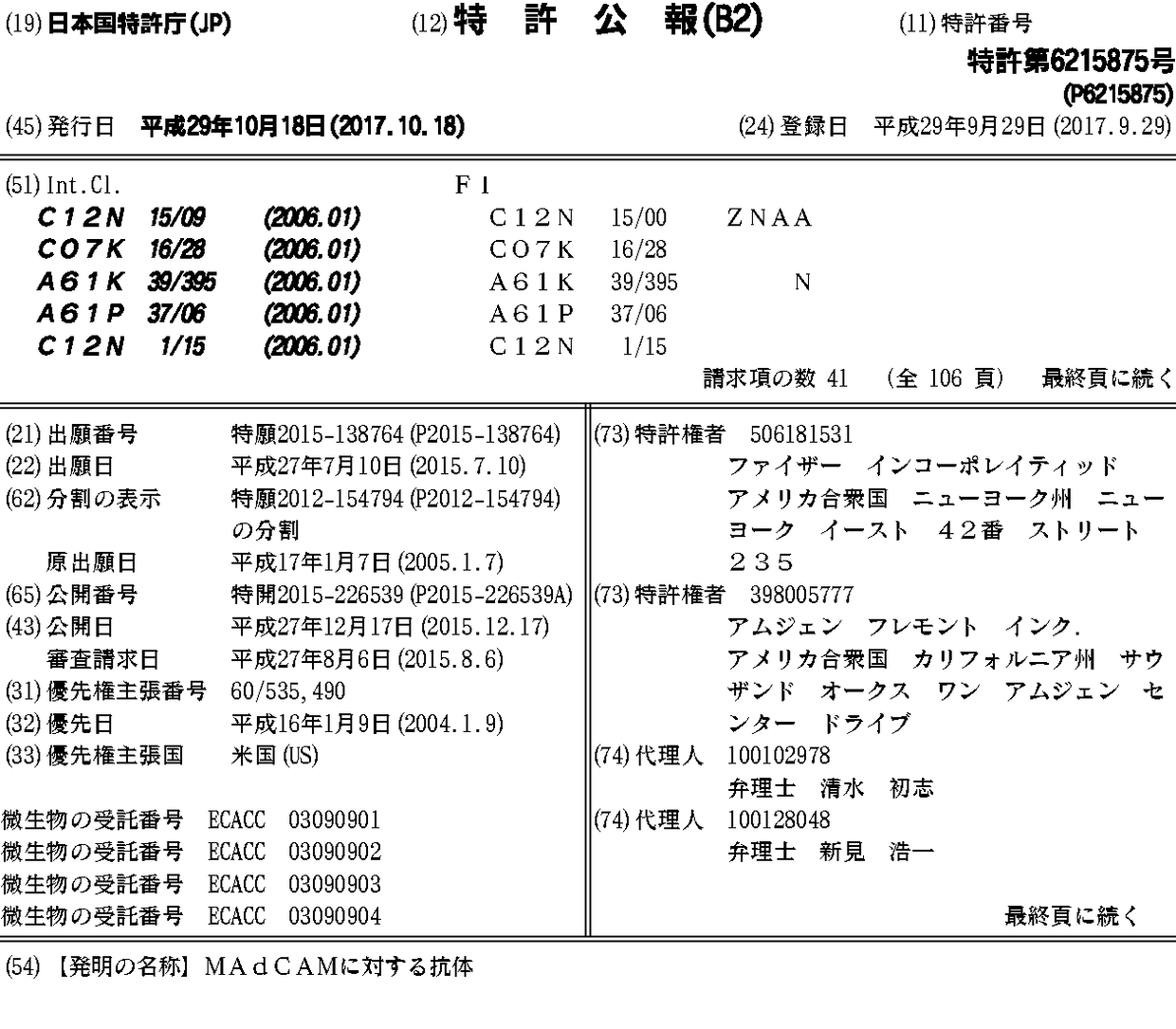 ファイザー インコーポレイティッド | アムジェン フレモント インク.