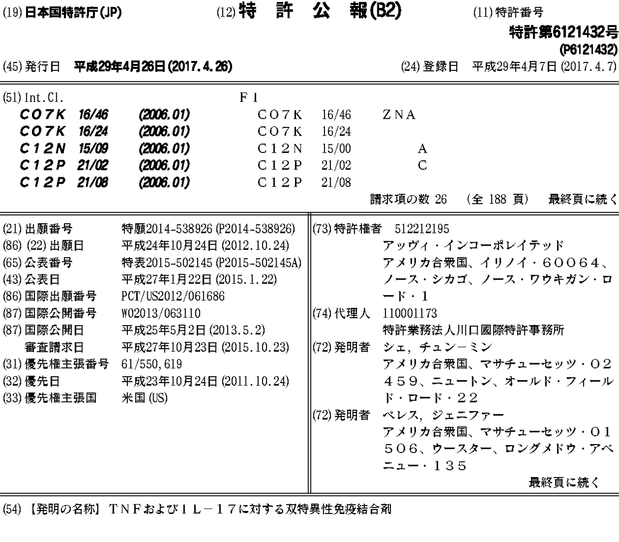 TNFおよびIL-17に対する双特異性免疫結合剤