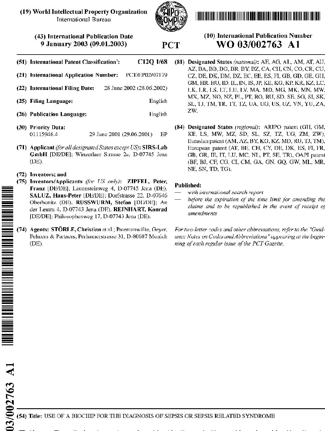 CA2450353A1 | CH695863A5 | CN1522304A | DE10296990B4 | DE10296990T5 | EP1270740A1 | GB0329411D0 | GB2393512A | HK1066982A | JP2005500834A | US20040259090A1 | US20060134685A1 | WO2003002763A1