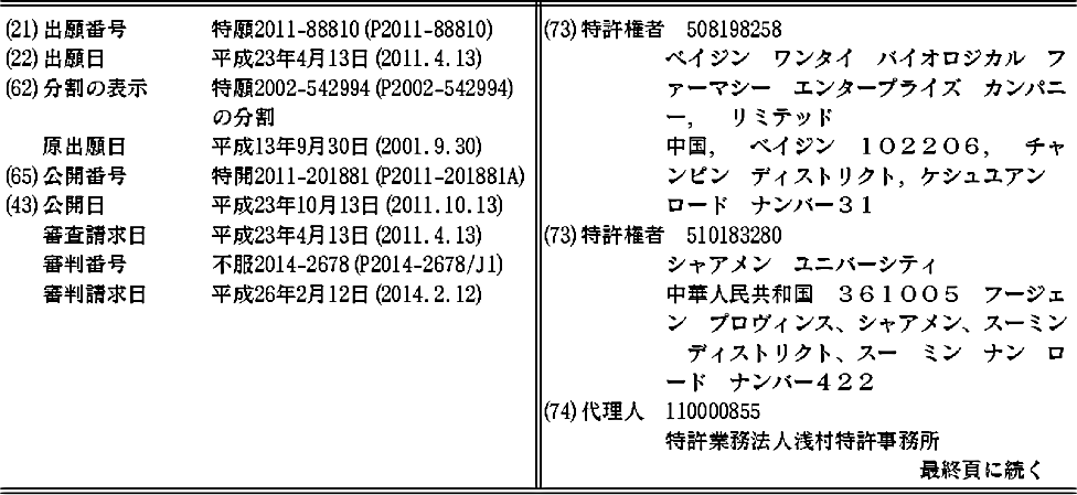ベイジン ワンタイ バイオロジカル ファーマシー エンタープライズ カンパニー, リミテッド | シャアメン ユニバーシティ