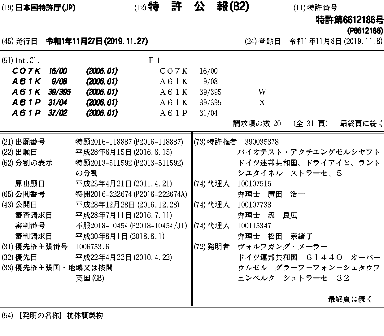 AU2011244240A1 | AU2011244240B2 | AU2011244241A1 | AU2011244241B2 | BR112012026934A2 | BR112012026937A2 | CA2796263A1 | CA2796263C | CA2796409A1 | CN102939107A | CN102939107B | CN102939111A | CN102939111B | CN107080842A | CO6640238A2 | CO6640239A2 | EP2560682A2 | EP2560682B1 | EP2560691A2 | EP2560691B1 | ES2551605T3 | ES2553385T3 | GB201006753D0 | HK1177600A | HK1177600A1 | HK1180601A | HK1180601A1 | HUE025853T2 | HUE028581T2 | IL222373A | IL222373D0 | IL222374A | IL222374D0 | JP2013530950A | JP2013530950A5 | JP2013531630A | JP2013531630A5 | JP2016196477A | JP2016222674A | JP6118248B2 | JP6283517B2 | JP6612182B2 | JP6612186B2 | KR101860459B1 | KR101872747B1 | KR1020130060199A | KR1020130094718A | MX2012012262A | MX2012012263A | MX337060B | MX338195B | PL2560682T3 | PL2560691T3 | RU2012149741A | RU2012149743A | RU2016140455A | RU2016140455A3 | RU2017111820A | RU2612899C2 | RU2617532C2 | SG184843A1 | SG184844A1 | US10059759 | US20130045199A1 | US20130052208A1 | US20150064170A1 | US20170058020A1 | US20180319871A1 | US8900806 | US9243056 | US9518110 | WO2011131786A2 | WO2011131786A3 | WO2011131787A2 | WO2011131787A3 | ZA201208540B | ZA201208541B