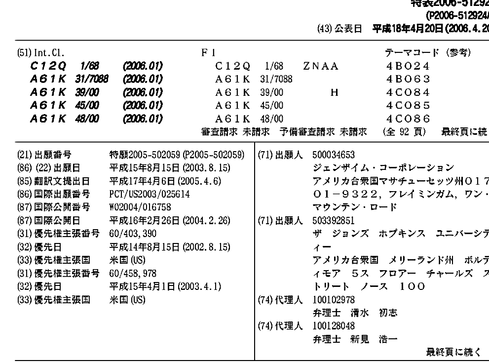 AU2003262717A1 | AU2003262717A8 | EP1576131A2 | EP1576131A4 | EP2236614A2 | EP2236614A3 | JP2006512924A | JP2006512924A5 | JP2010284161A | JP2010284161A5 | US20060127902A1 | US20100062002A1 | US20120308479A1 | WO2004016758A2 | WO2004016758A3