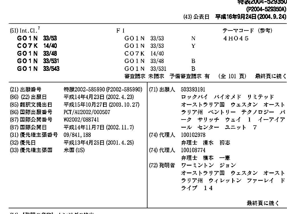 AT406578T | AU2002248996A1 | AU2002248996B2 | CA2445430A1 | CN1505759A | DE60228557D1 | EP1381864A1 | EP1381864A4 | EP1381864B1 | HK1061713A | JP2004529350A | JP2004529350A5 | JP3969722B2 | US20040166546A1 | US20060105406A1 | US20080187988A1 | US20090030054A1 | US6916626 | WO2002088741A1