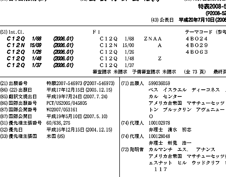 AT478602T | AU2005337873A1 | BRPI0519096A2 | CA2591142A1 | CN101299962A | DE602005023216D1 | EP1839057A2 | EP1839057A4 | EP1839057B1 | HK1115286A | HK1115286A1 | JP2008523816A | JP2008523816A5 | KR1020070092737A | US20060166277A1 | US7955805 | WO2007053161A2 | WO2007053161A3