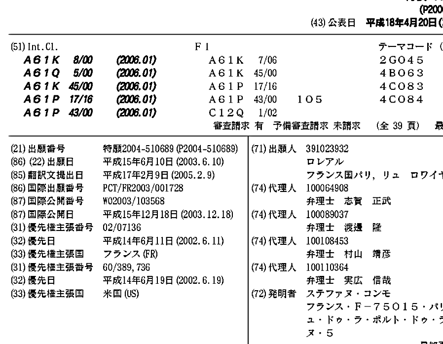 AU2003255652A1 | AU2003255652A8 | CA2486544A1 | EP1515687A2 | EP1515687B1 | ES2447853T3 | FR2840530A1 | FR2840530B1 | JP2006513134A | JP2007185193A | JP2007291142A | JP2010246564A | US20050208086A1 | US20090118203A1 | WO2003103568A2 | WO2003103568A3