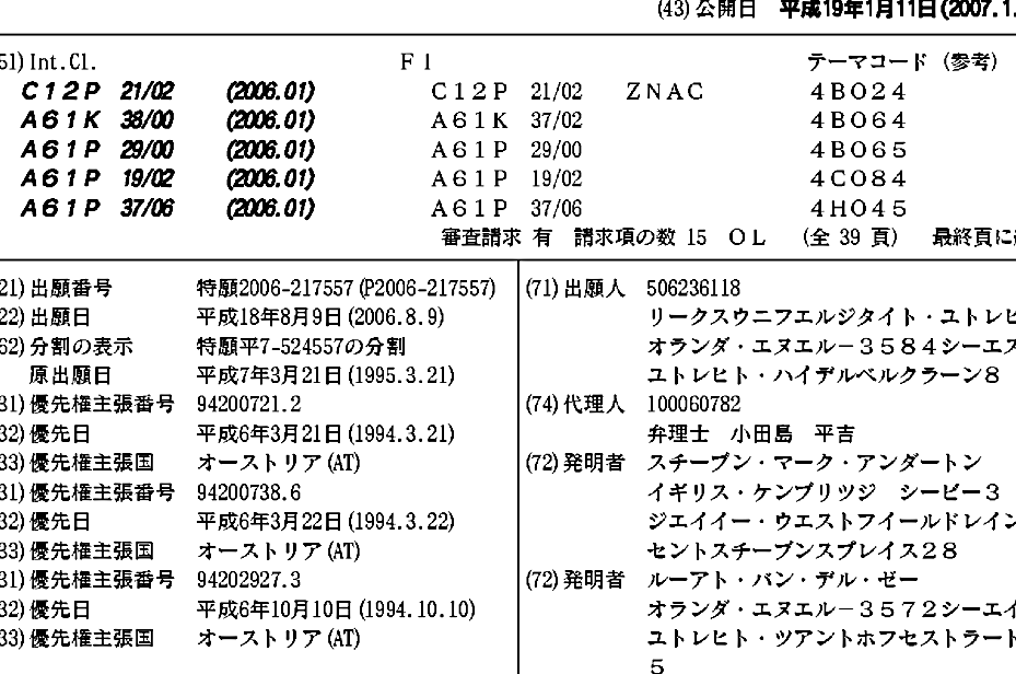 AT260295T | AU1995019628A1 | AU699007B | CA2185826A1 | CA2185826C | DE69532605D1 | DE69532605T2 | DK0751957T3 | EP0751957A1 | EP0751957B1 | ES2216009T3 | JP1997511239A | JP2007000147A | PT751957E | WO1995025744A1