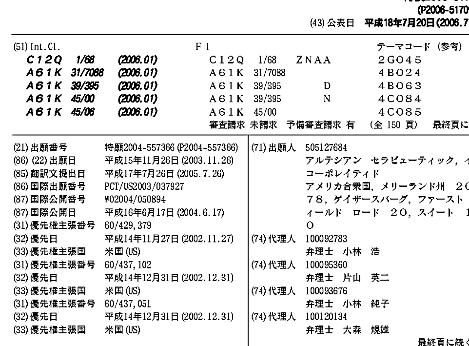 AU2003293124A1 | CA2506630A1 | EP1573045A2 | EP1573045A4 | JP2006517092A | MXPA05005653A | US20060275770A1 | WO2004050894A2 | WO2004050894A3