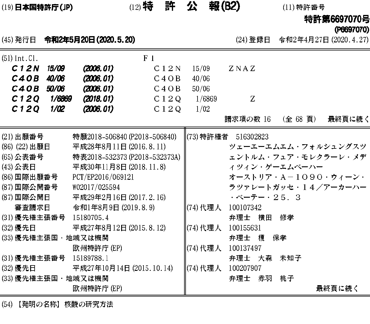 CA2995305A1 | CN108368540A | DK3334841T3 | EP3334841A1 | EP3334841B1 | EP3674414A1 | HRP20200062T1 | HUE047175T2 | JP2018532373A | JP2018532373A5 | JP6697070B2 | LT3334841T | PL3334841T3 | PT3334841T | RS59838B1 | SI3334841T1 | US20180237951A1 | WO2017025594A1