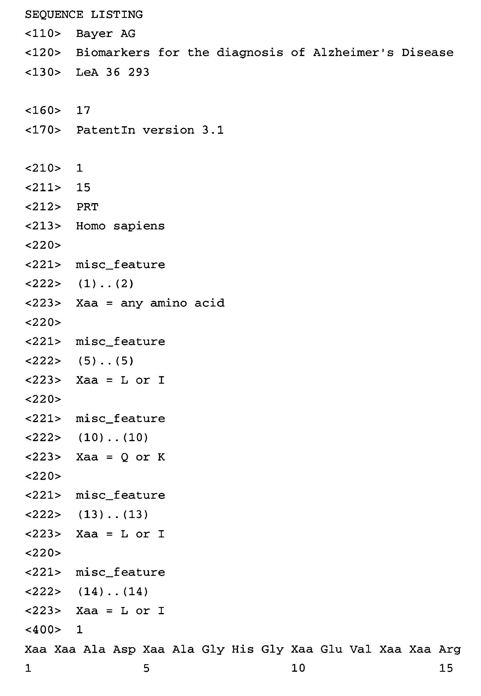 Polypeptide biomarkers for diagnosing Alzheimer's disease
