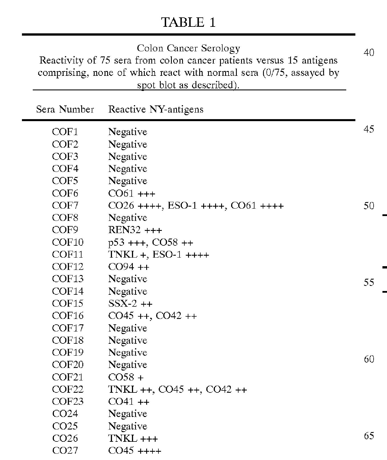 Colon cancer antigen panel