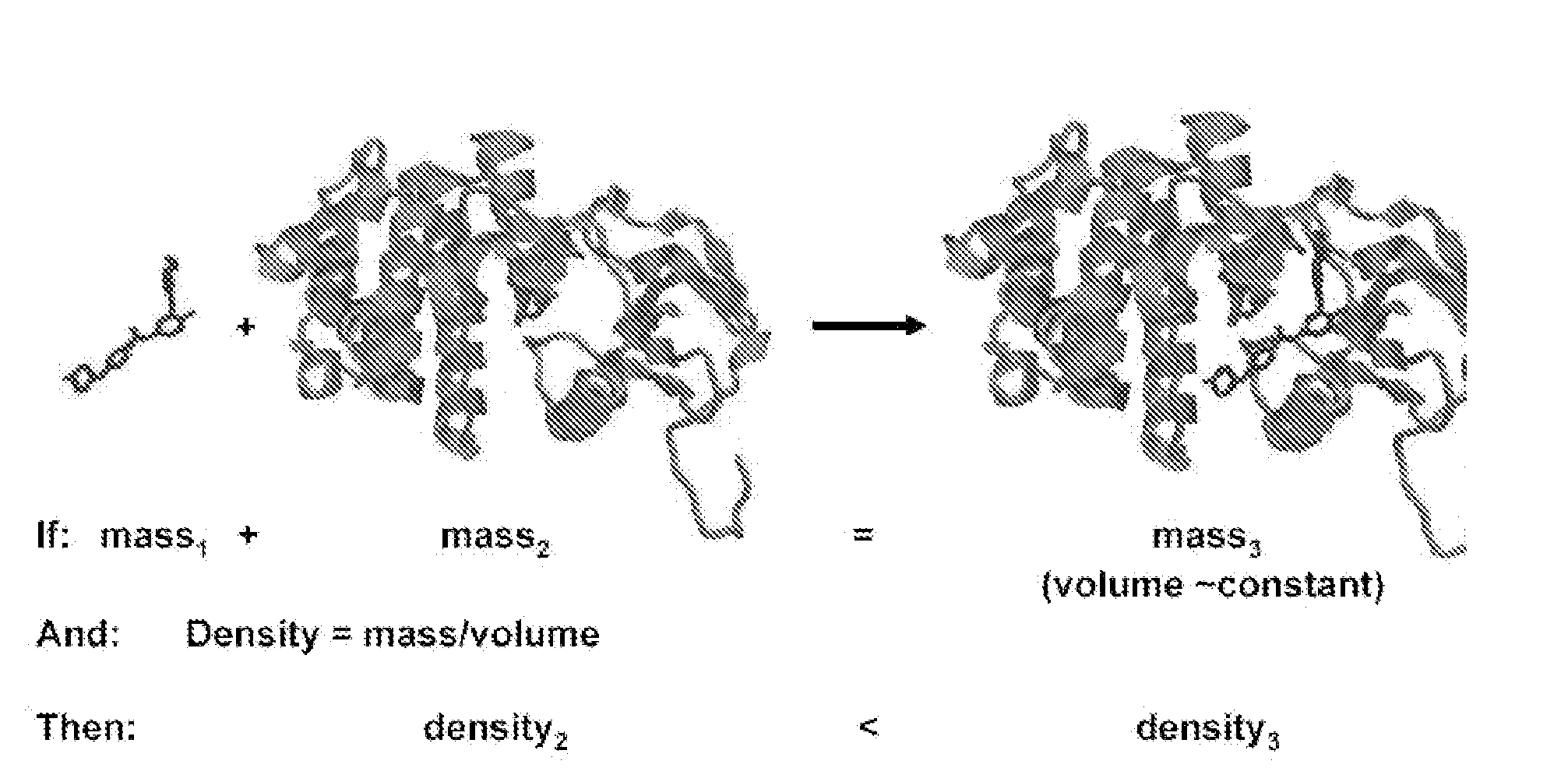 Density-based methods for separation of materials, monitoring of solid supported reactions and measuring densities of small liquid volumes and solids