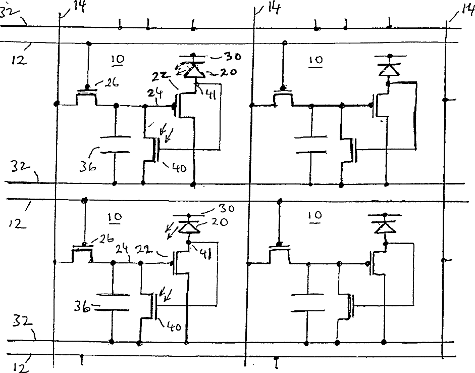 Matrix array display devices with light sensing elements and associated storage capacitors