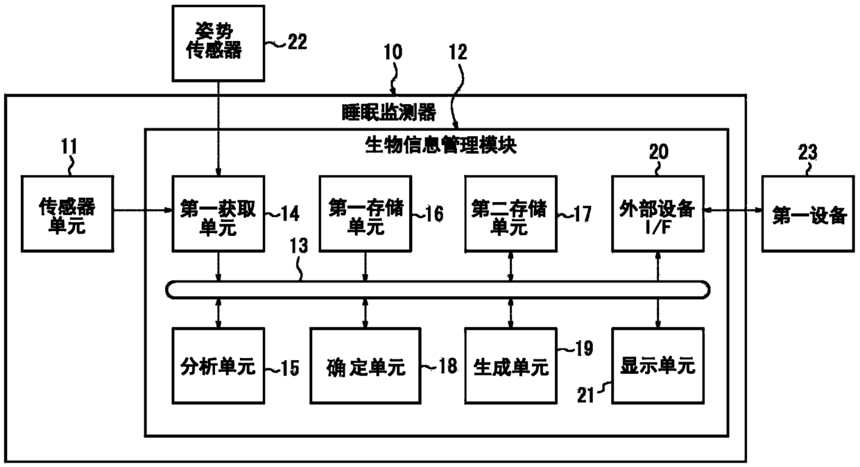 生物信息管理模块、睡眠监测器以及控制装置