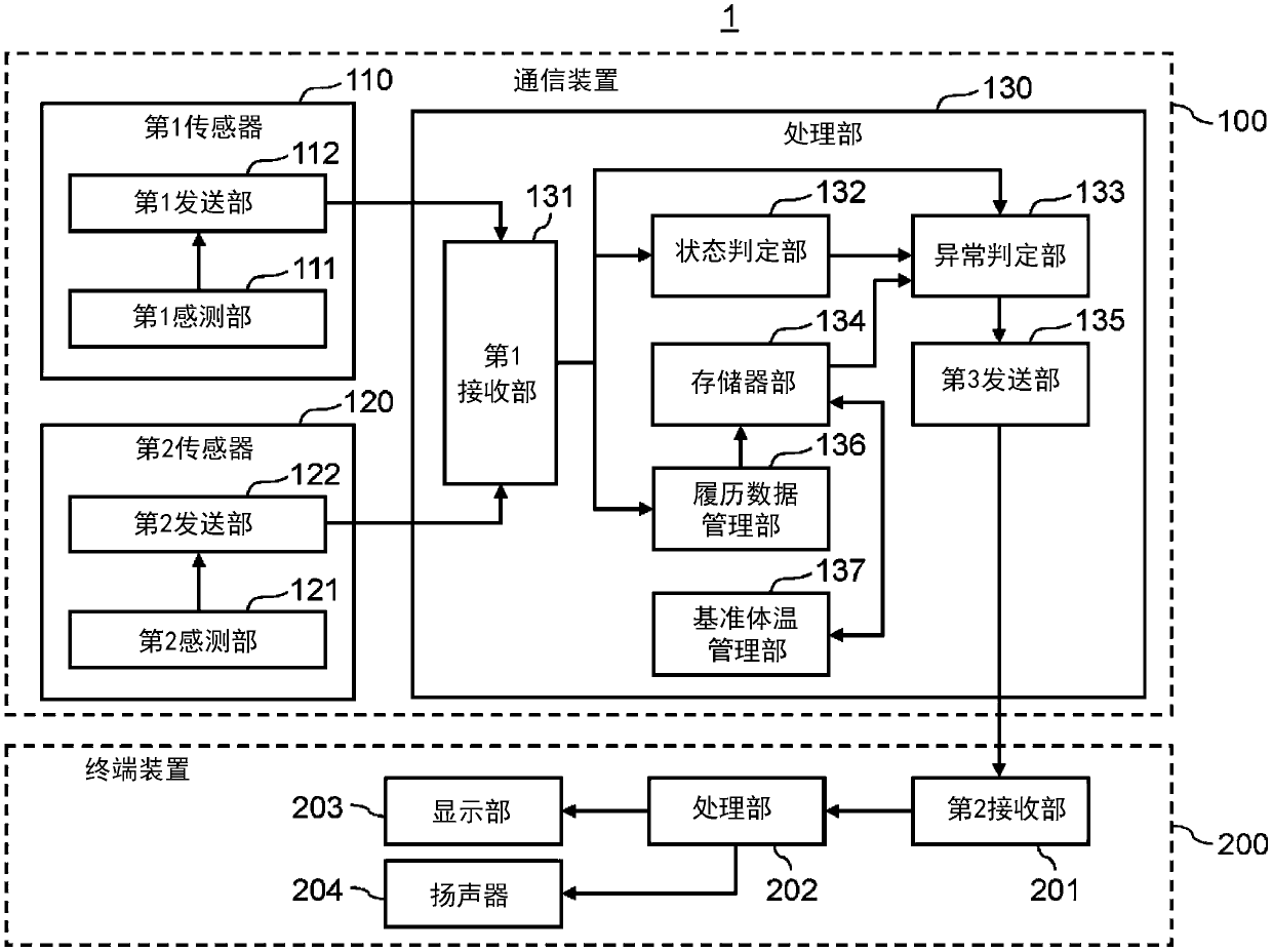 通信装置、异常通知系统及异常通知方法