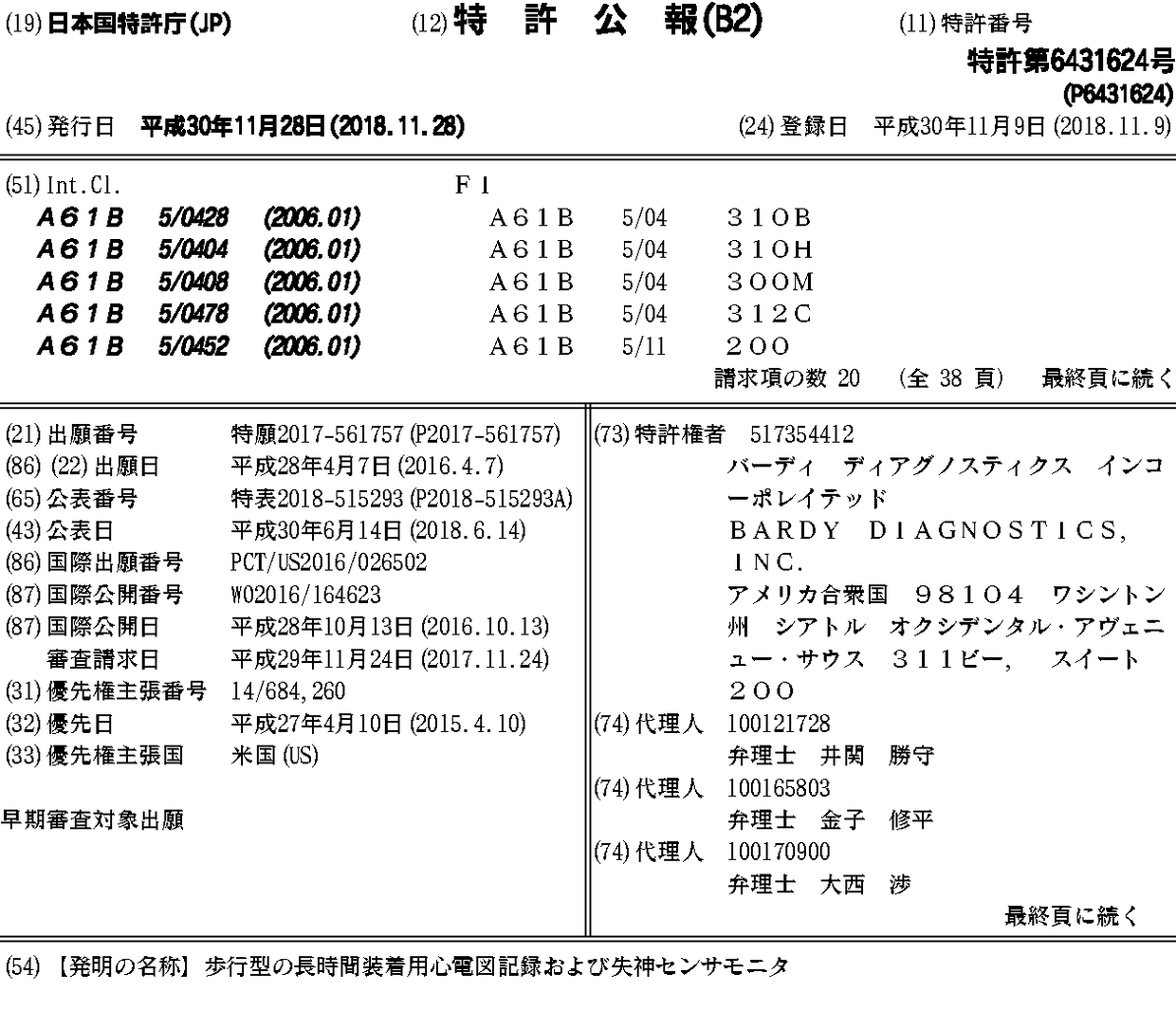 CA2982126A1 | CA2982126C | JP2018515293A | JP6431624B2 | US10478083 | US20150087948A1 | US20150087949A1 | US20160213263A1 | US20170188871A1 | US20170340215A1 | US20180177423A1 | US20200085337A1 | US9545204 | US9642537 | US9730593 | US9901274 | WO2016164623A1