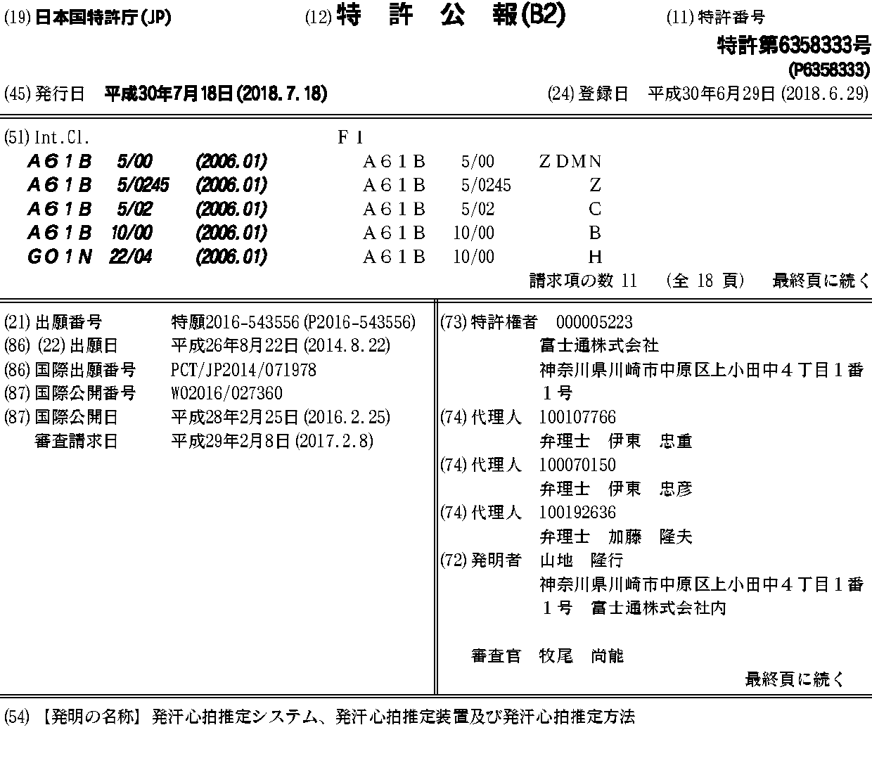 EP3184031A1 | EP3184031A4 | JP6358333B2 | JPWO2016027360A1 | SG11201701074QA | US20170143232A1 | WO2016027360A1