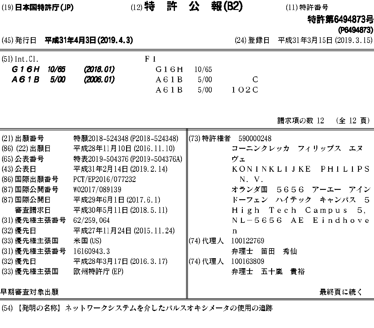 BR112018010392A2 | BR112018010392A8 | CN108369822A | EP3380963A1 | EP3380963B1 | JP2019504376A | JP6494873B2 | WO2017089139A1