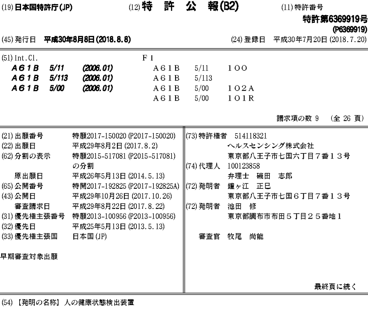 JP2017192825A | JP2019000673A | JP6369919B2 | JP6495165B2 | JPWO2014185397A1 | JPWO2014185397A5 | WO2014185397A1