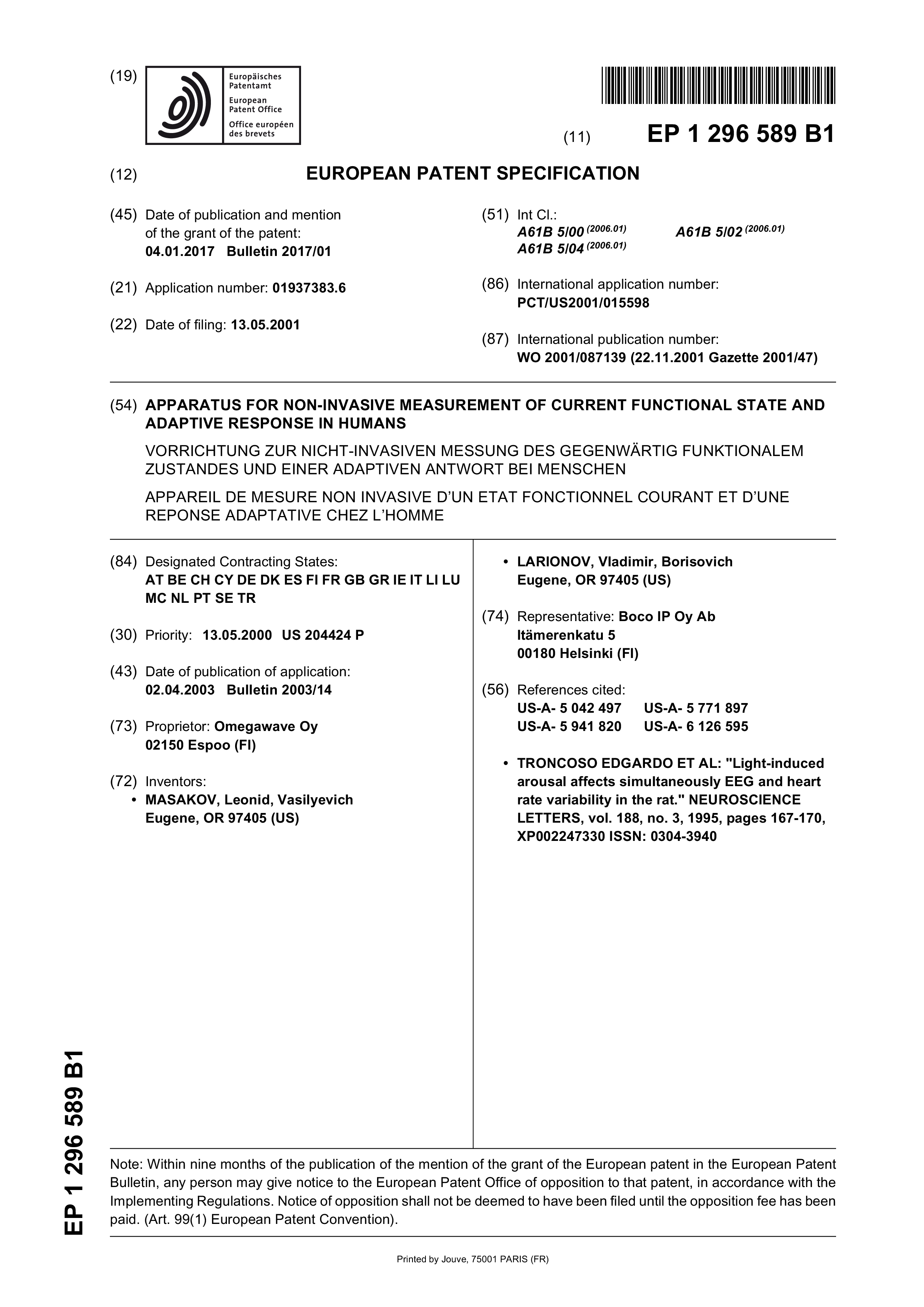 AU2001063126A1 | AU2001263126A1 | AU2001263126B2 | CN100384369C | CN1441649A | EP1296589A2 | EP1296589A4 | EP1296589B1 | HK1059723A | HK1059723A1 | JP2003534044A | JP2003534044A5 | KR1020030066325A | US20020045835A1 | US20030195427A1 | US6572558 | WO2001087139A2 | WO2001087139A3
