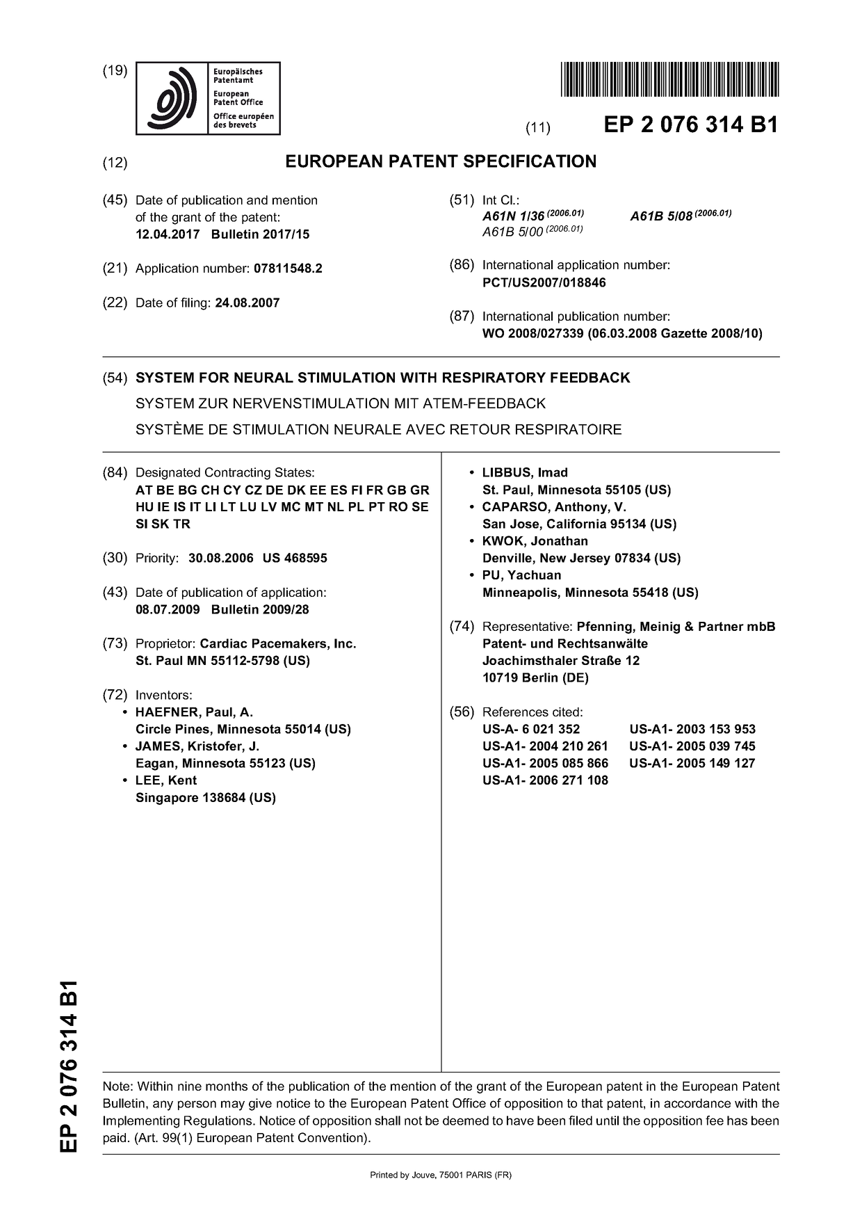 HAEFNER, PAUL, A. | JAMES, KRISTOFER, J. | LEE, KENT | LIBBUS, IMAD | CAPARSO, ANTHONY, V. | KWOK, JONATHAN | PU, YACHUAN