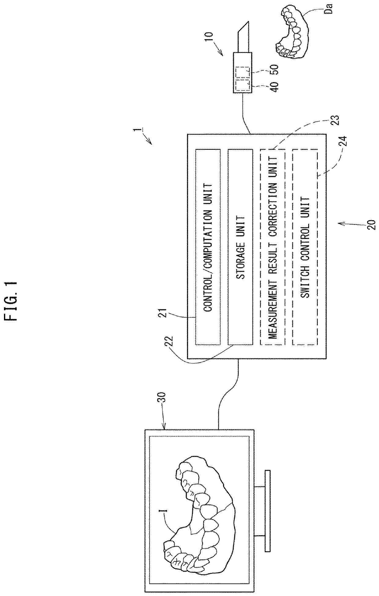 Intraoral three-dimensional measuring device, intraoral three-dimensional measuring method, and intraoral three-dimensional measurement result display method