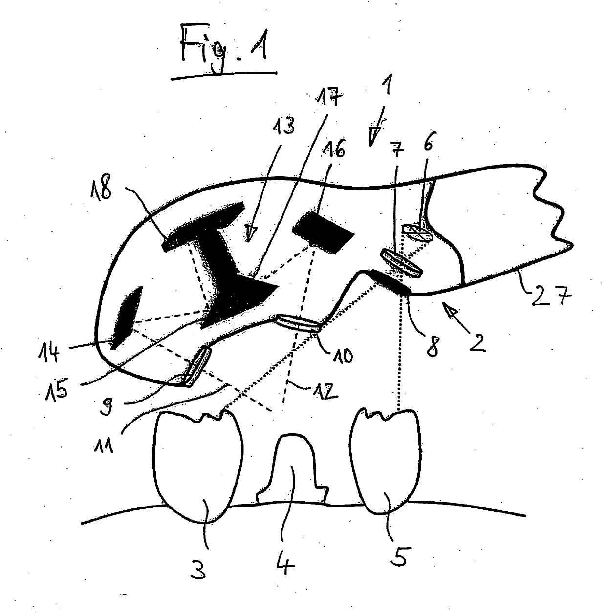 Device for determining the 3D coordinates of an object, in particular a tooth