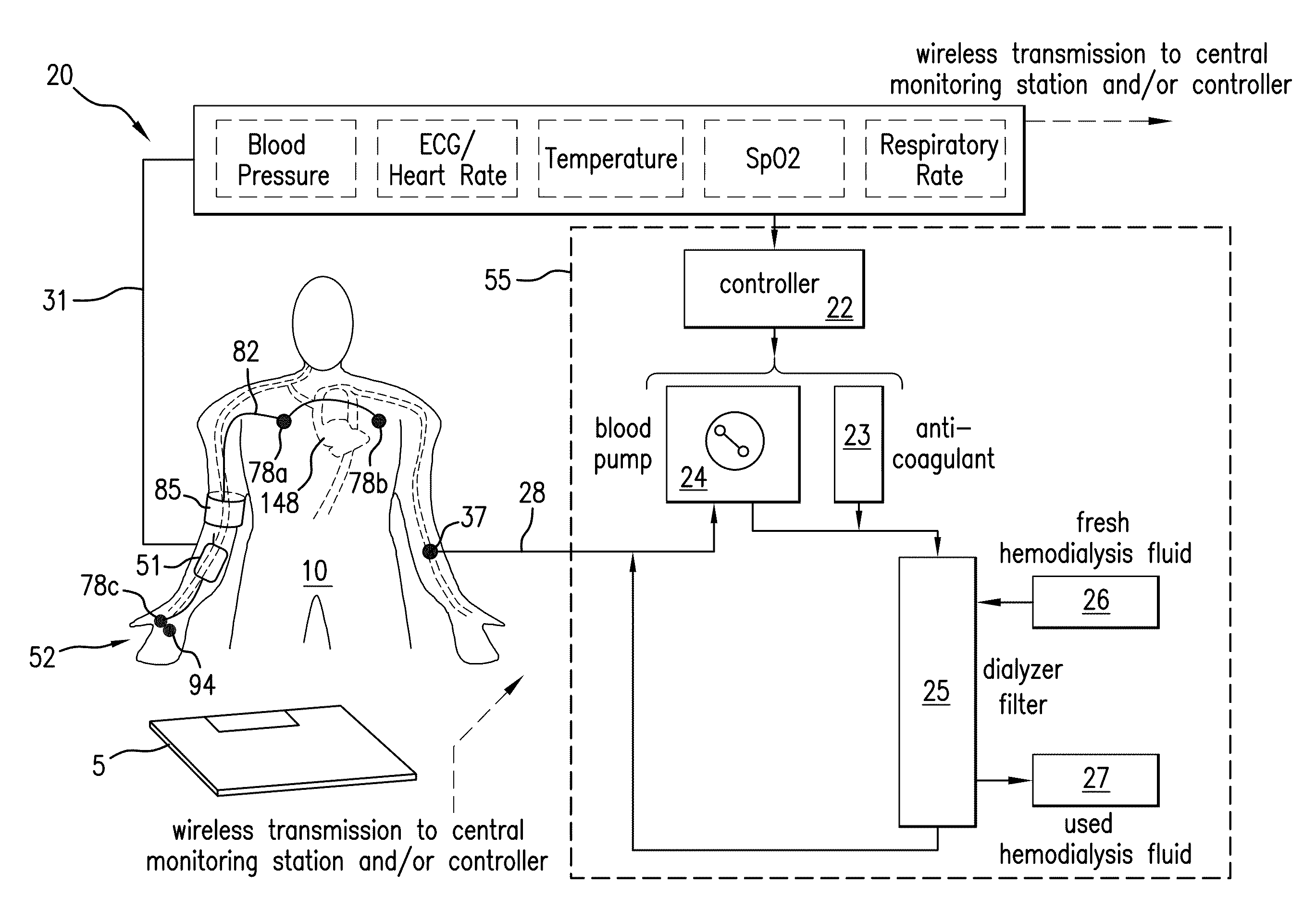System for measuring vital signs during hemodialysis