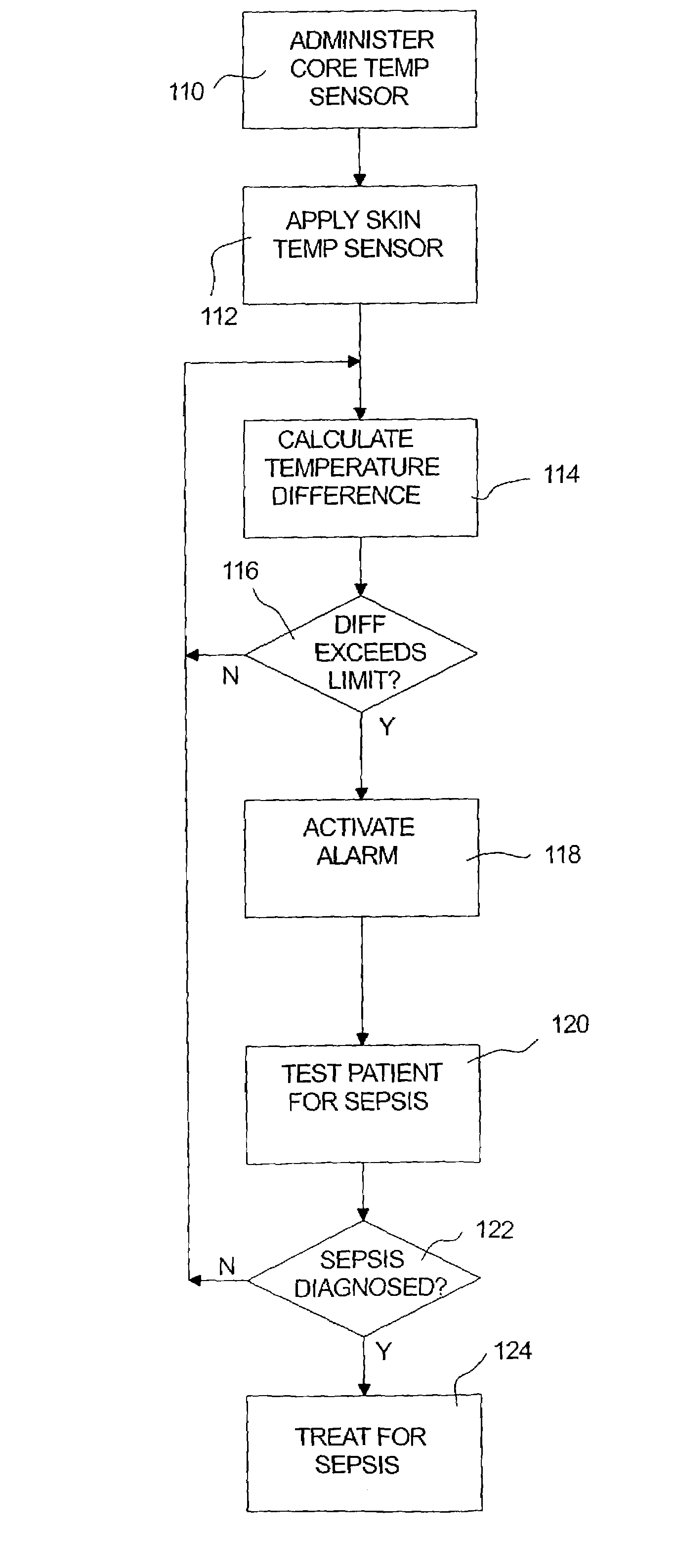 Method for continuous monitoring of patients to detect the potential onset of sepsis
