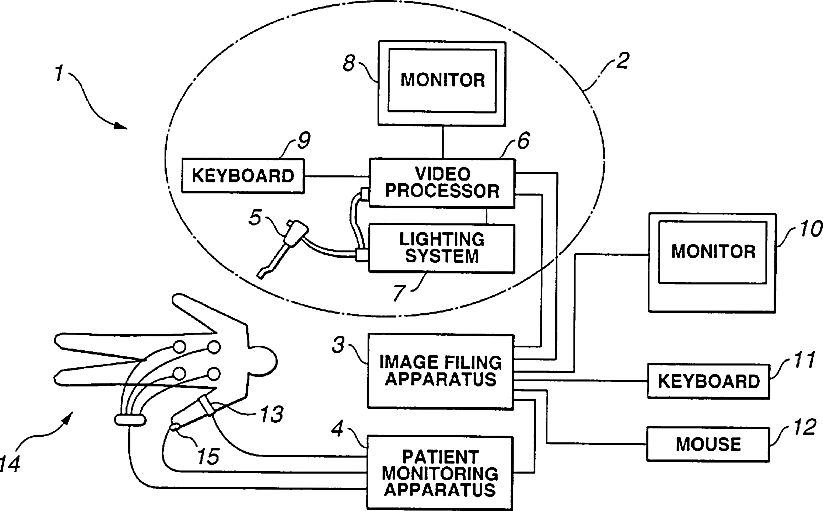 Endoscopic image filing system for recording and managing information on condition of patient in endoscopic examination so as to relate such information with endoscopic image information