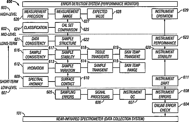 Intelligent system for detecting errors and determining failure modes in noninvasive measurement of blood and tissue analytes