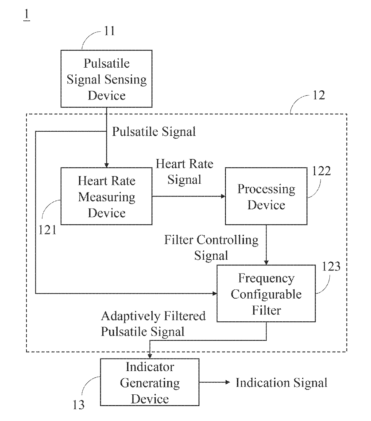 Heart rate adaptive filtering device, physiology information sensing device and method for processing pulsatile signal