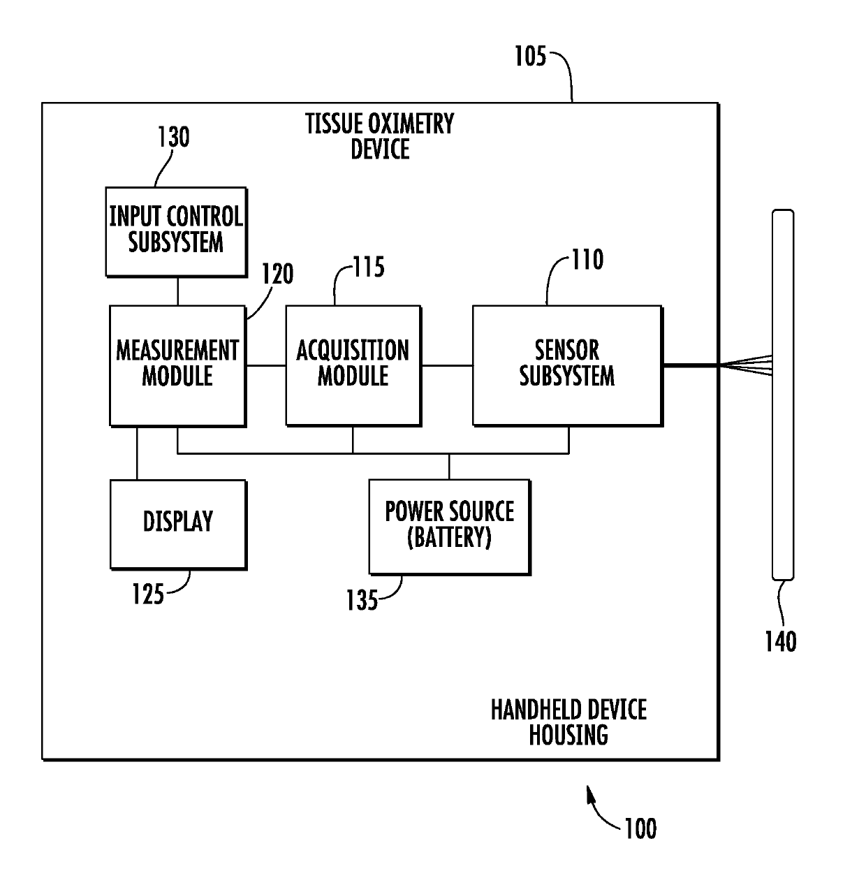 Wireless, handheld tissue oximetry device