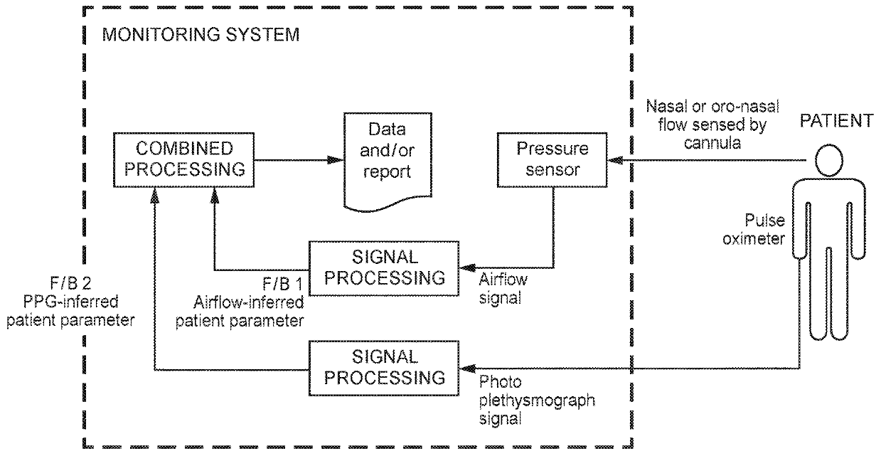 Method and apparatus for non-invasive monitoring of respiratory parameters in sleep disordered breathing
