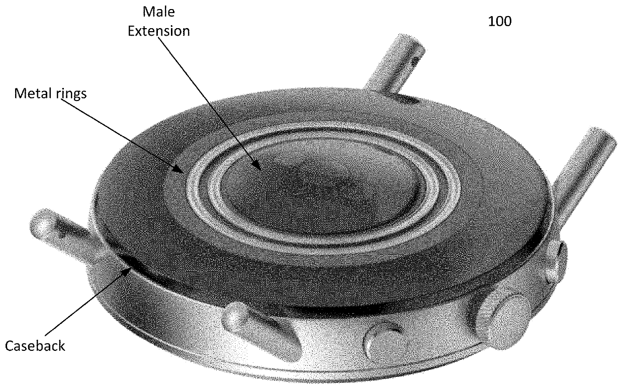 Wearable electronic device with a caseback having multiple, arc-shaped, ferrous, metal contacts
