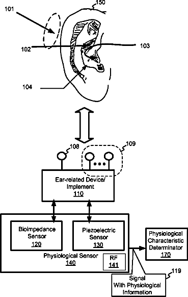 Sensing physiological characteristics in association with ear-related devices or implements