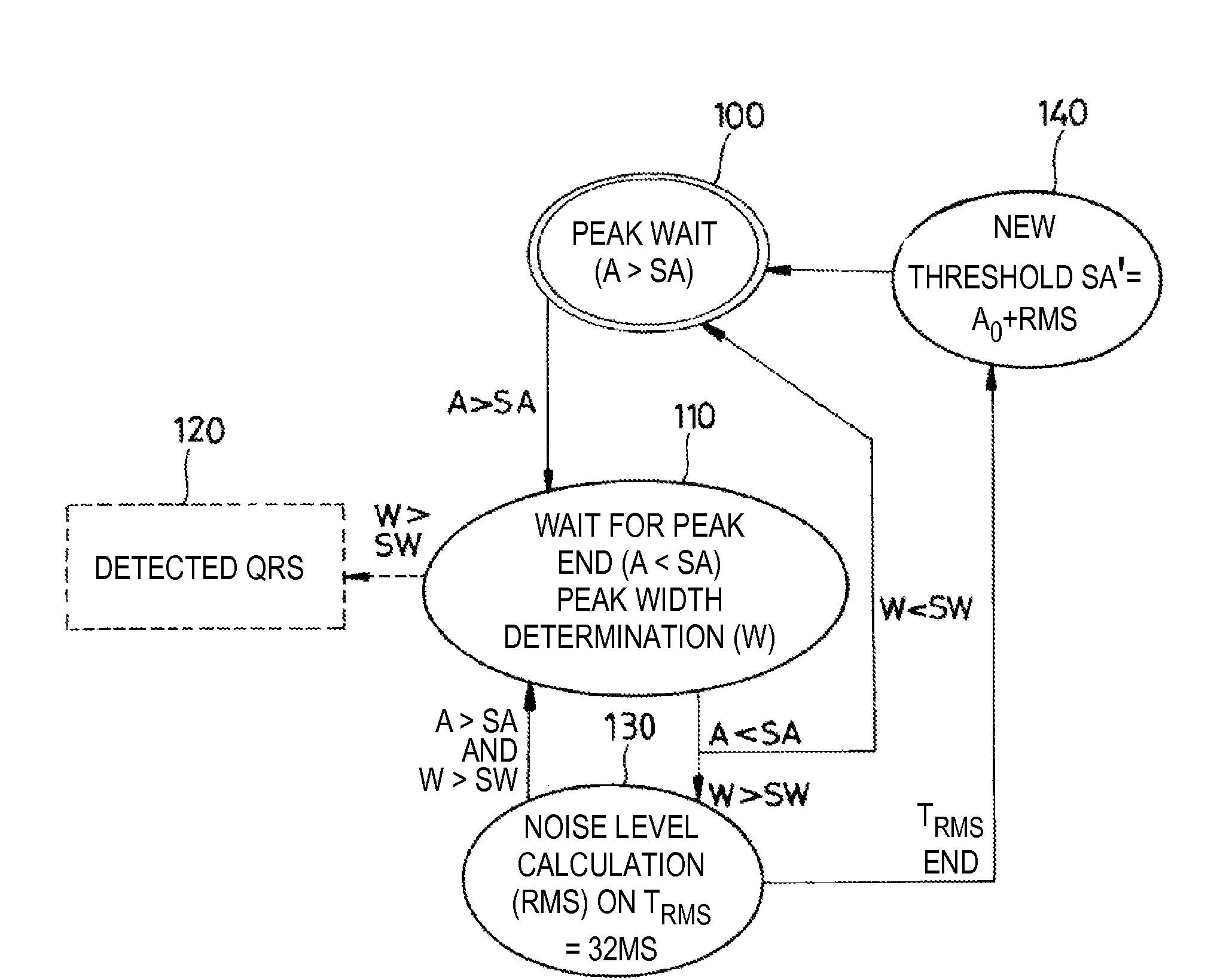 Active medical device, including an implantable defibrillator, for detection of QRS complexes in a very noisy signal