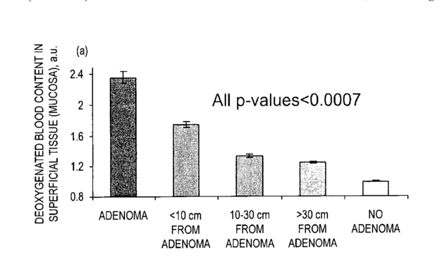 Method of using the detection of early increase in microvascular blood content to distinguish between adenomatous and hyperplastic polyps