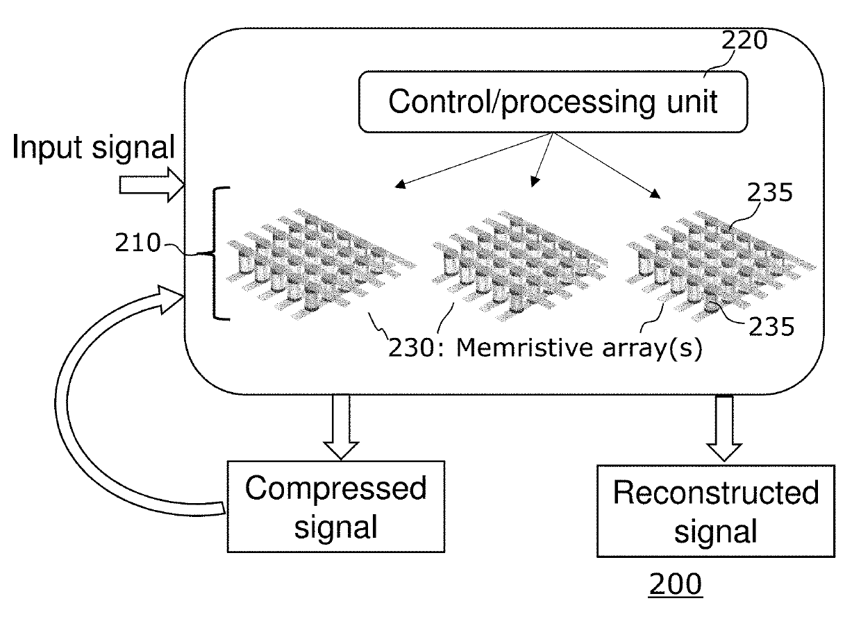 Sensor device with resistive memory for signal compression and reconstruction