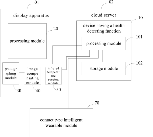Device having health detecting function, display apparatus, system and health detecting method