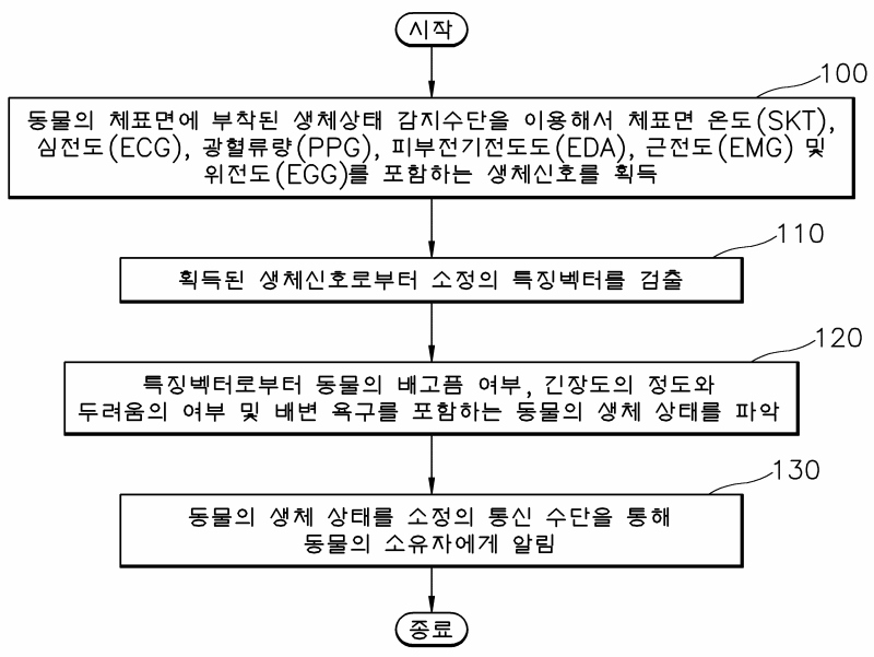생리신호획득 및 해석을 이용한 동물의 상태 파악 방법 및장치