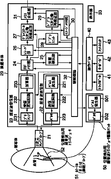 カテーテルまたは細径プローブの位置を検出可能な超音波診断装置